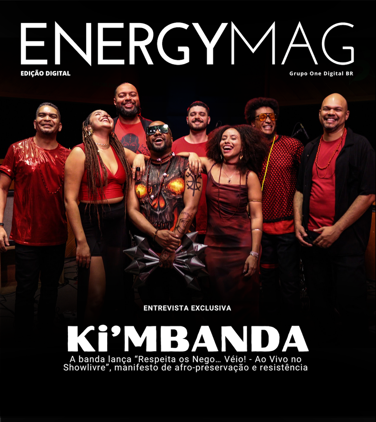 A banda Ki’MBANDA chega com força total ocupando a capa digital da Energy Mag. No próximo dia 27 de fevereiro, o grupo apresenta em todas as plataformas de música, via selo Marã Música, o single “Respeita os Nego… Véio! – Ao Vivo no Showlivre”. O lançamento não é apenas uma nova faixa, mas um registro cru e potente que sintetiza a essência do “afro rock” e funciona como um manifesto político, espiritual e geracional dentro do cenário nacional. Faça agora o pré-save!
